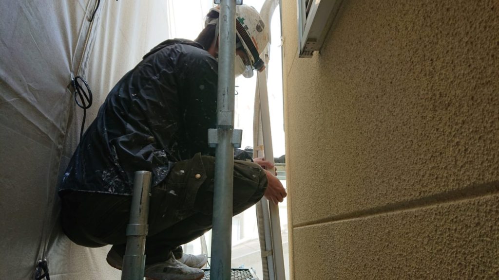 ↑こちらはサッシ(窓)を養生中です🙆♀️丁寧な仕事の配島君🐕です🙋過去に大手ハウスメーカーの工事部に勤めていた事もあり ハウスメーカーのお家の塗装も得意なんです☝️☺️塗装職人歴は10年以上の彼女なしですっ彼女募集中です👋😜笑