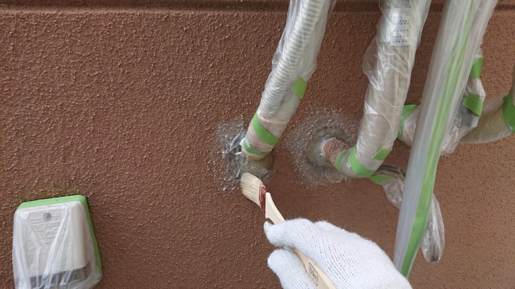 ↑こちらはシリコンコーキング材専用プライマー塗布中です🎨🖌️このシリコンコーキング材とは ホームセンターなどでも 一番安く売られていて手軽に買えるコーキング材 ゆえに新築を建てた時に 各業者(設備屋さん・電気屋さん・テラス屋さん)などが 使用します☝️👷このシリコンコーキングは塗料がほとんど密着しない塗装屋泣かせのコーキング材なんです😨💦