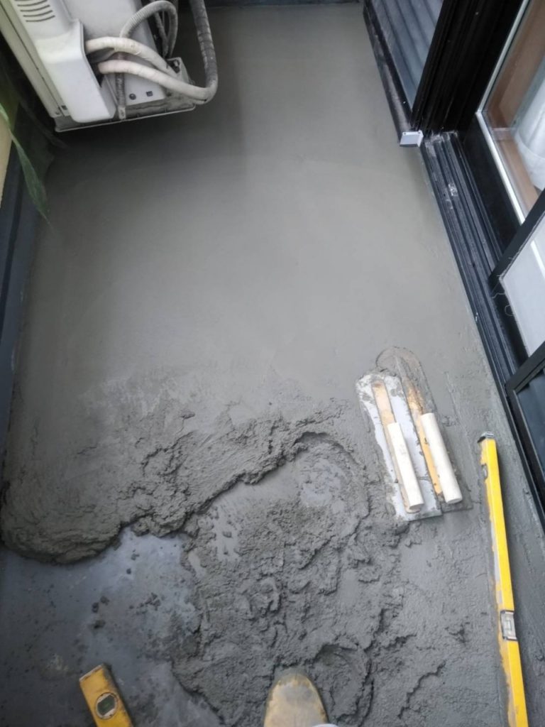 今日はバルコニーの土間(床)の勾配調整を行いました👷♂️❤️左官仕事になりますので バリバリの左官職人に来ていただき施工して頂きました👏🎵😲他業種の仕事見るの大好きです👀🎵