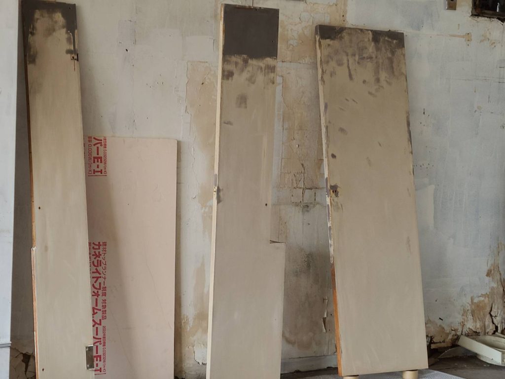 そして建具にダイノックシートを貼っていきます✨昨日パテ処理まで済ましております✌️ポリパテよりペーパー当てやすく厚付もできるので、凄い材料です👏気になる方はお電話下さい😁