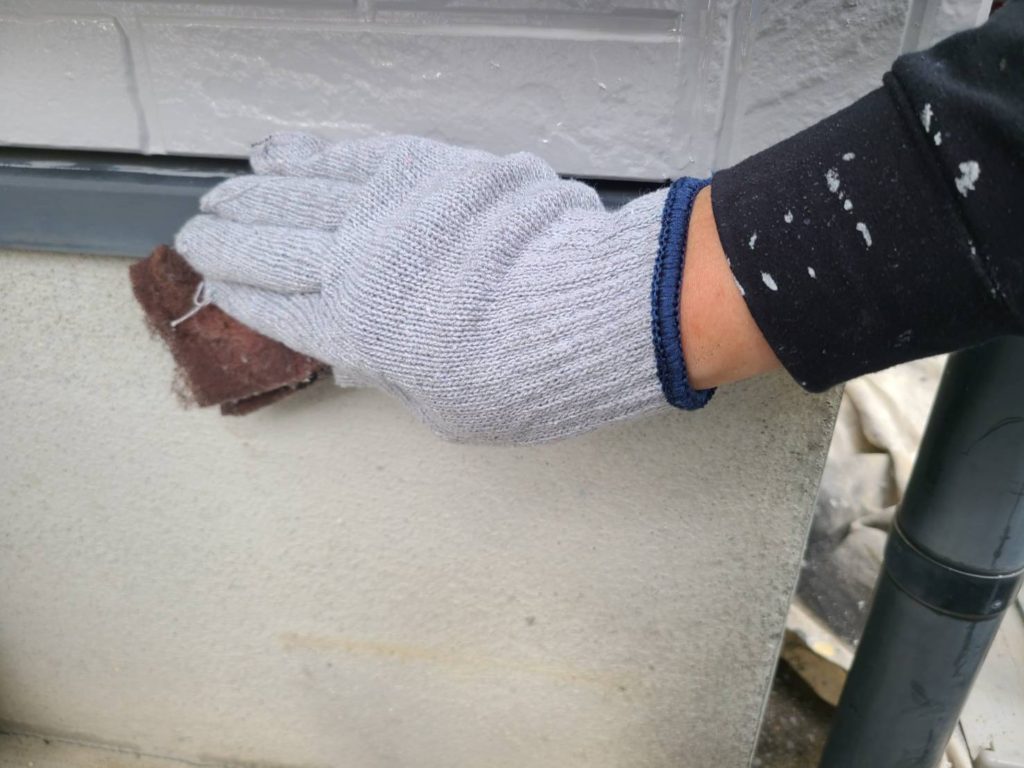 ↑↑↑付帯水切り ケレン作業中 ケレン作業を行う事で 細かい傷を付け 塗料の密着を良くします(ᯅ̈ )