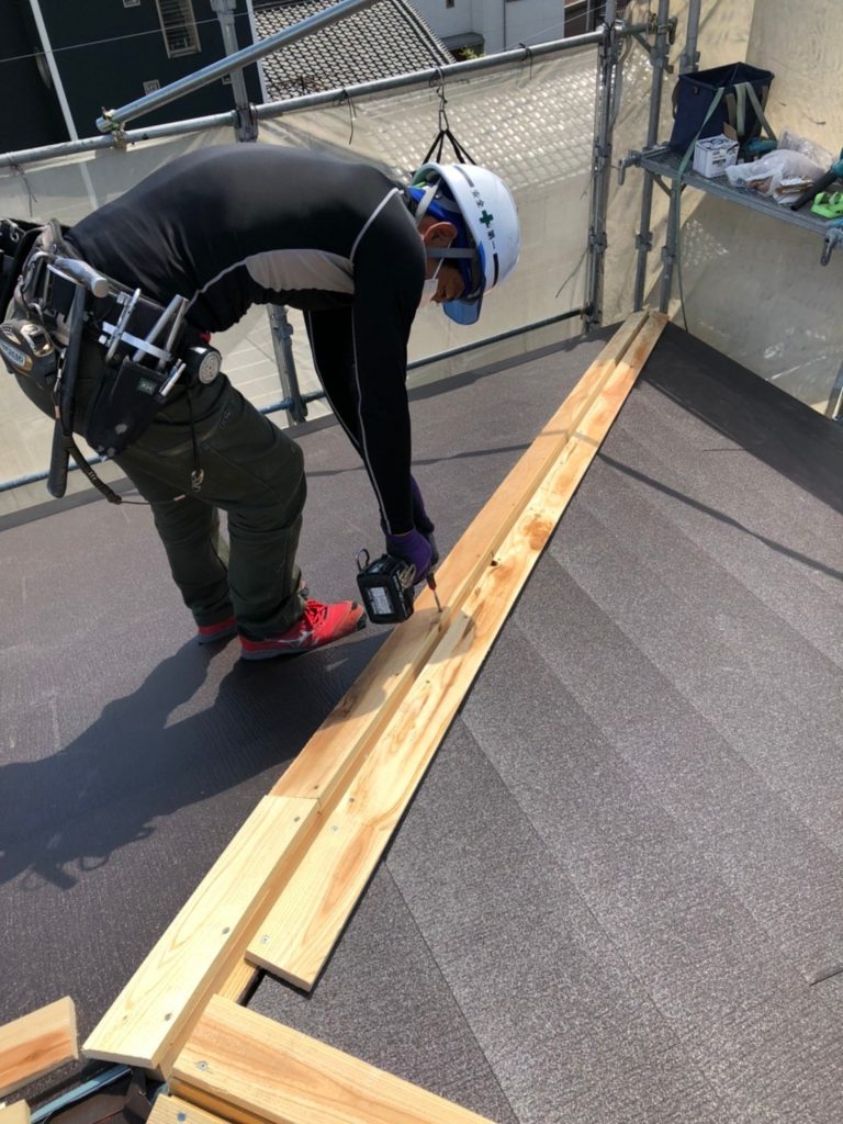 ↑写真で見てると パカッパカッパカッて感じなのですが 加工しながら取り付けていく作業は やっぱり職人技やな〜☺️☺️と感じます₍˄·͈༝·͈˄₎ฅ˒˒