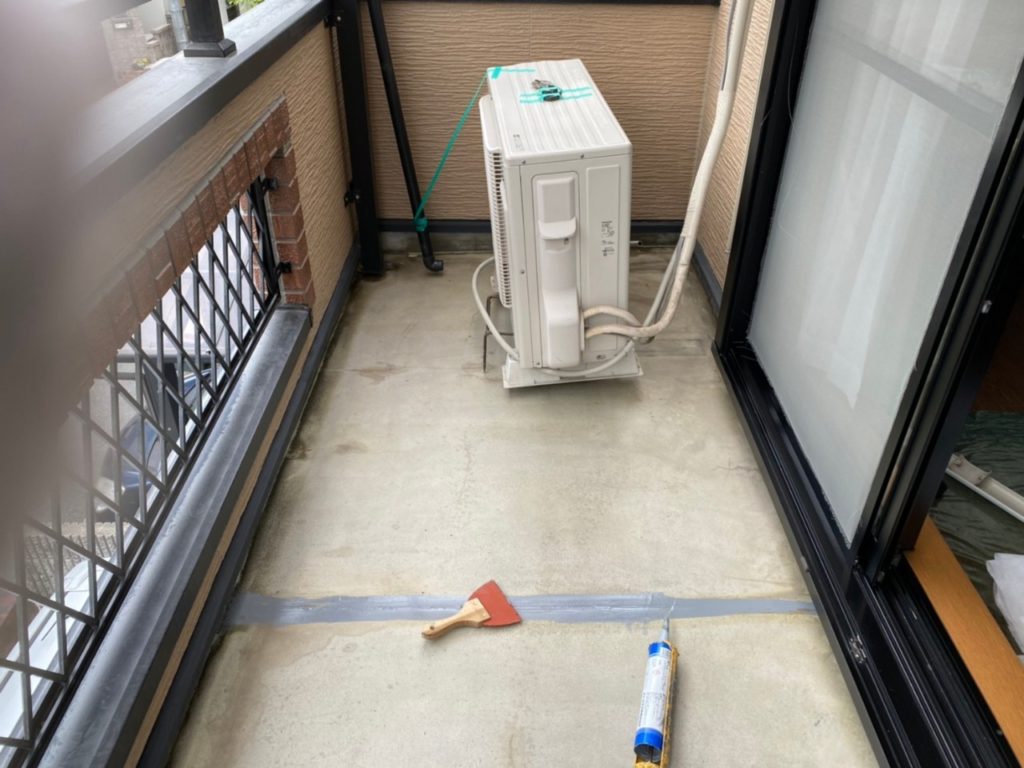 今日は バルコニー土間(床)の防水工事を行いました👷♂️今回はポリマーセメント系水性防水😲😲