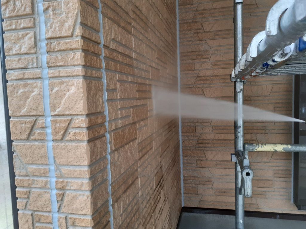 高圧洗浄は 外壁塗装の下地処理になります🙆♀️🙆♀️チョーキングなどがある場合は しっかり洗わないと 塗料がすぐに剥がれてきたりなどの不具合に繋がります😱😱汚い藻やコケ カビが着いているまま塗装されるってイヤですよね?