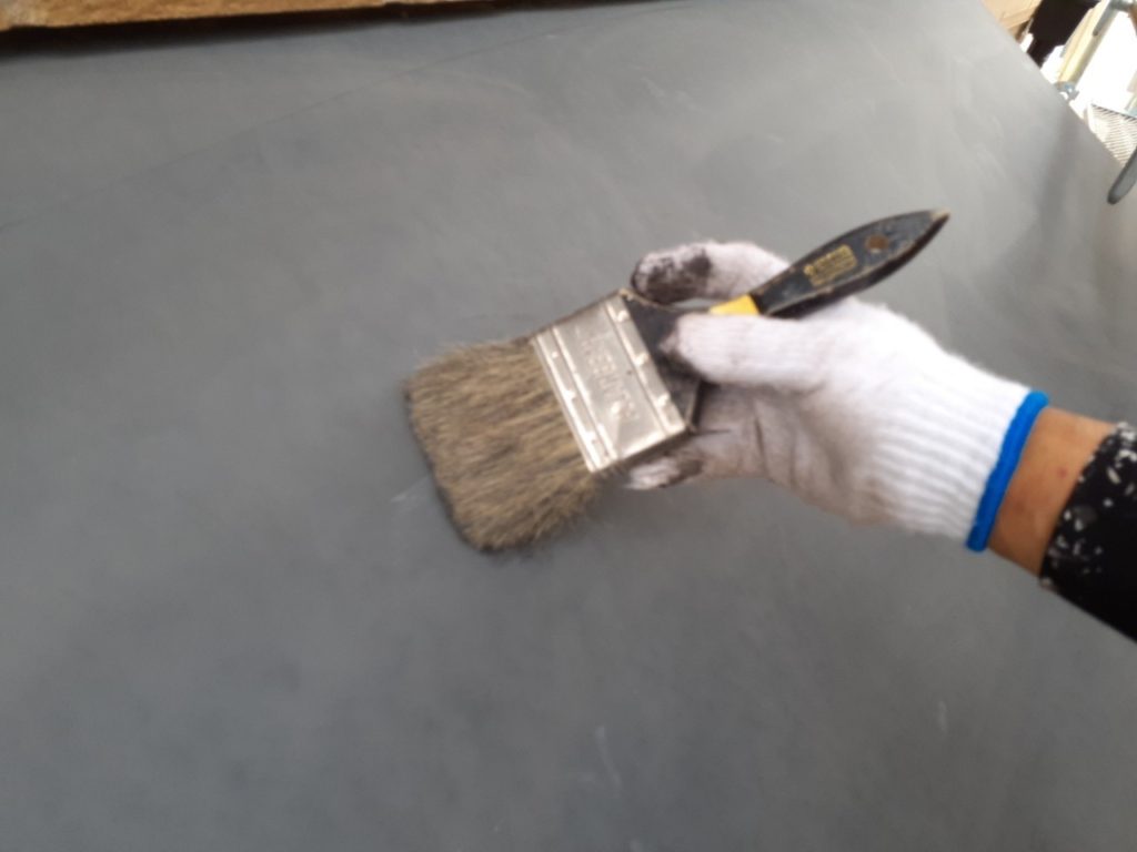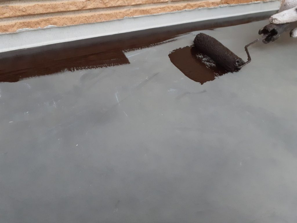 ↑バルコニー土間(床)防水層1層目施工完了