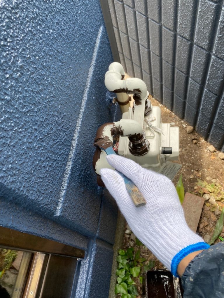 ↑ガスメーター配管 1回目上塗り作業中