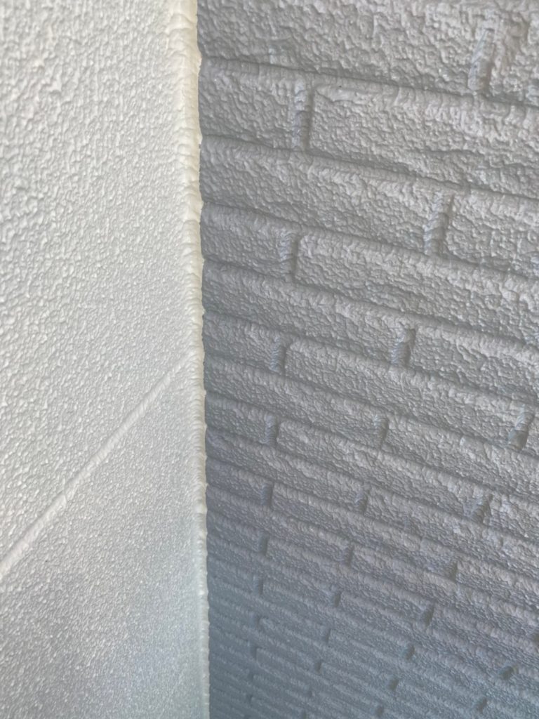 ↑外壁 補修吹き付け作業中 周りの模様に合わせて吹き付け作業を行い 補修跡を目立ちにくくする施工になります💁♀️