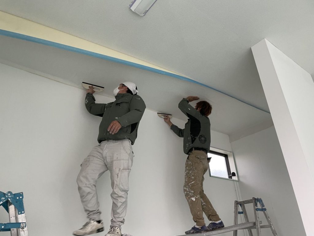 ↑インナーガレージ天井 1回目上塗り作業中