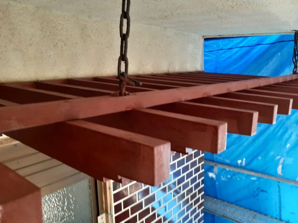 ↑こちらも 玄関天井箇所の木部になります! ケレン作業中