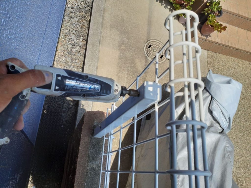 ↑塗装工事が始まる際 邪魔なので 取り外した境界フェンスを取り付けます
