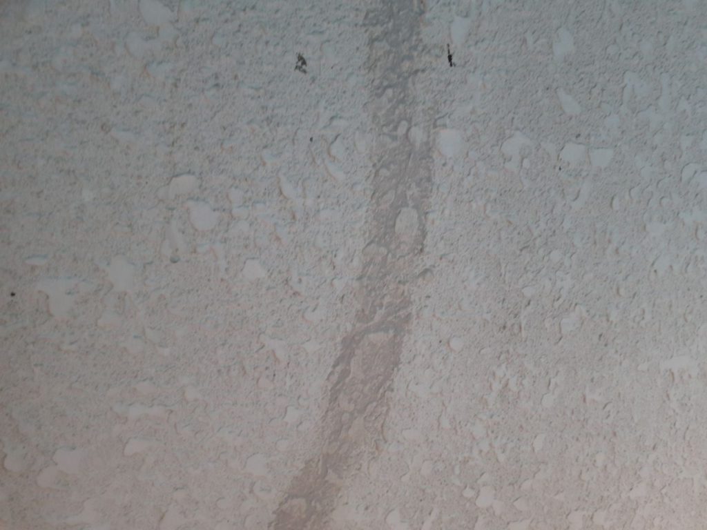 ↑クラック(ひび割れ)に クラック補修材と呼ばれる強力繊維入り補修材をすり込んでいきます💁♀️