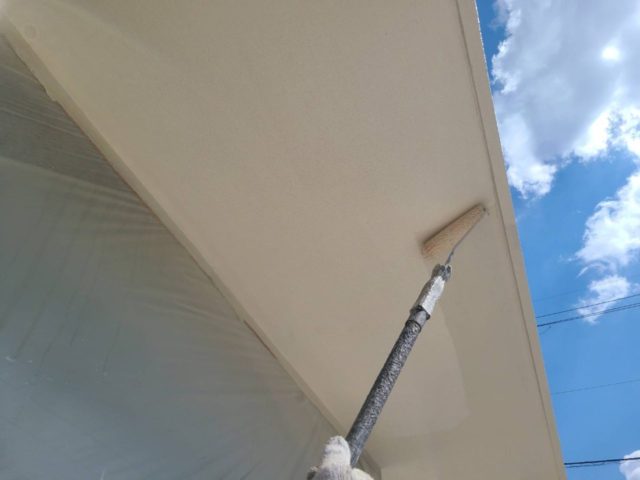 外壁が暗めの色での塗装でも 天井を明るい色で塗装すると 建物の印象が明るくなります! 個人的には 天井と外壁の色は 分けたい派です🙋♀️❤!