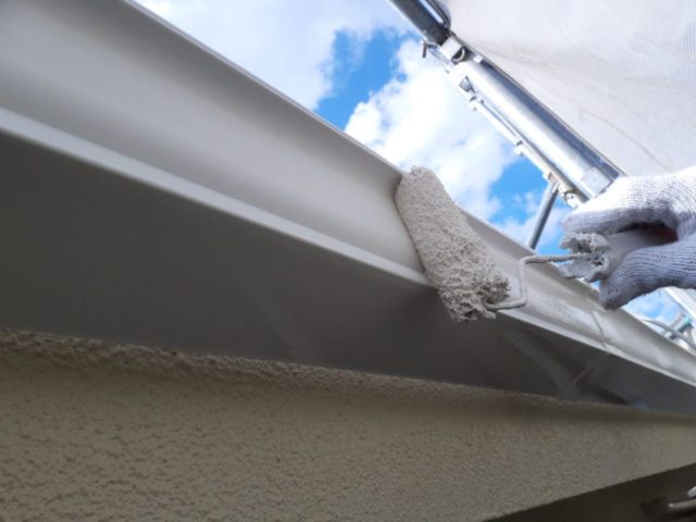 ↑付帯箇所 雨樋 1回目上塗り作業中