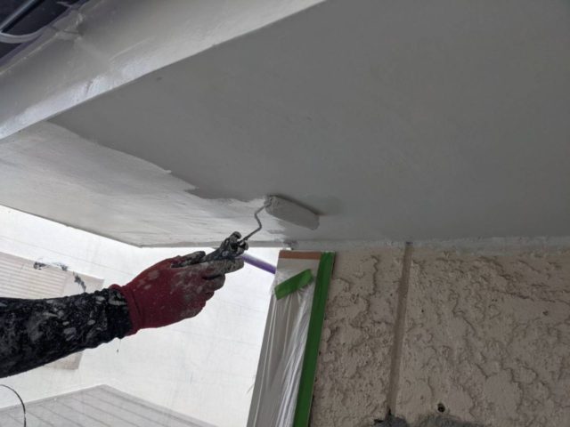 ↑軒天井 1回目上塗り作業中