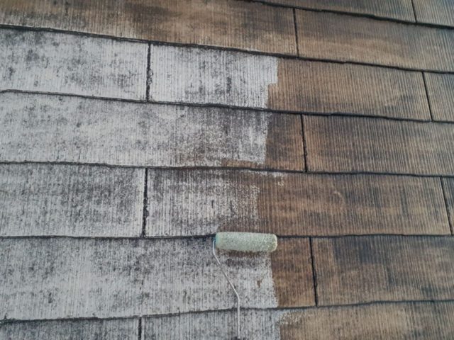 ↑傷み具合が激しい場合は このように濡れ色になりません😨😨屋根の下塗りは 基本的に“濡れ色になるまで”とされています😲😲! 濡れ色になって 初めて塗料の効果が発揮されるんですね!👀💡