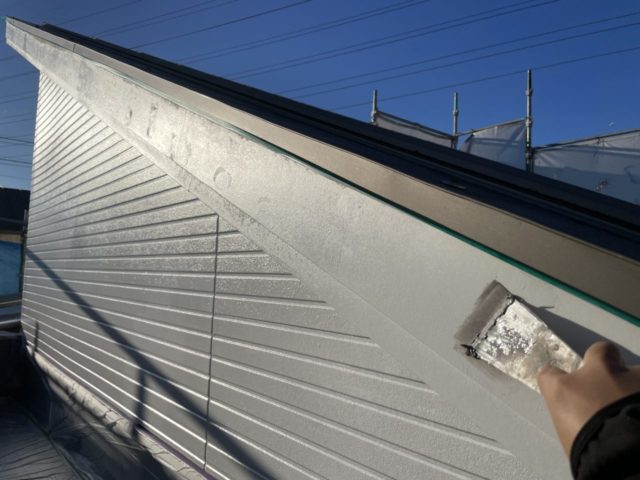 ↑付帯箇所 破風板 気になりません?うっすら凸凹。笑 多分9割の塗装屋は そのまま塗装すると思います🙋♀️この凸凹は 旧塗膜の剥がれた跡ですね🥲光の加減で凹凸が目立つため