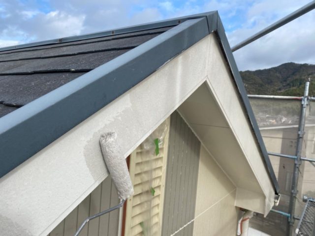 ↑付帯箇所 破風板 下塗り中