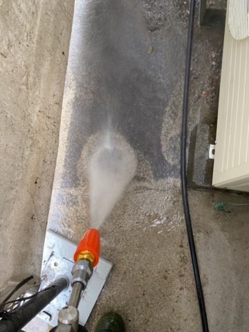 ↑犬走り土間(床) 高圧洗浄中