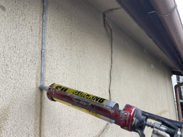 ↑プロが直させて頂きます🙏🏻Vカットと呼ばれる補修工法になります🙋♀️外壁をカットする事で ガムのような素材(シーリング材)の補修材を外壁の深くまで打設する事ができます🙆♀️💗割れにくい外壁を作る事ができます(*•̀ㅂ•́)و✧