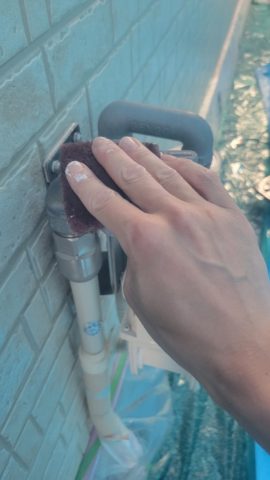 ↑ガス配管 ケレン(目粗し)作業中 この目粗しとは?表面の汚れを取り除くとともに 表面に傷を付ける事で塗料の引っかかりをつくり塗料の密着を良くする為の役割があります(∩´∀`∩)💕