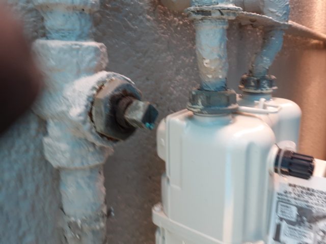 ↑ガス管 錆止め(鉄部下塗り)塗布完了