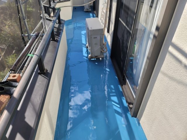 ↑バルコニー土間(床) ウレタン防水1層目完了