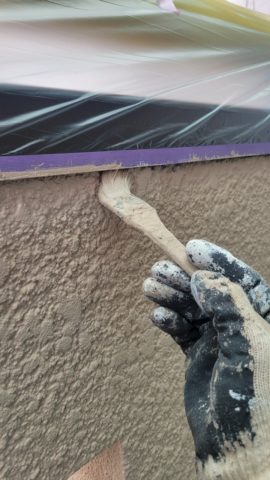 ↑外壁 チリ取り作業中 チリ取り作業とは?ローラーでは 塗装できないような細かい箇所の塗装を刷毛で塗装する作業になります🙋♀️💗