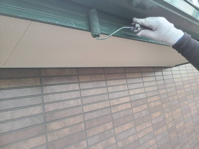 ↑シャッターボックス 1回目上塗り(トップコート・ダイナミックトップマイルド)塗布作業中