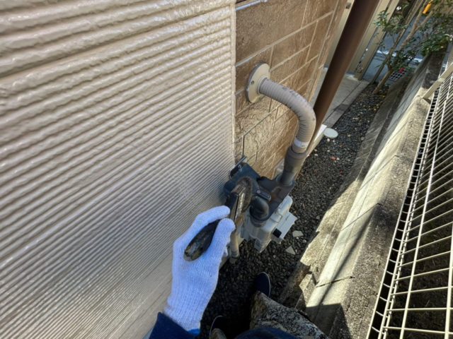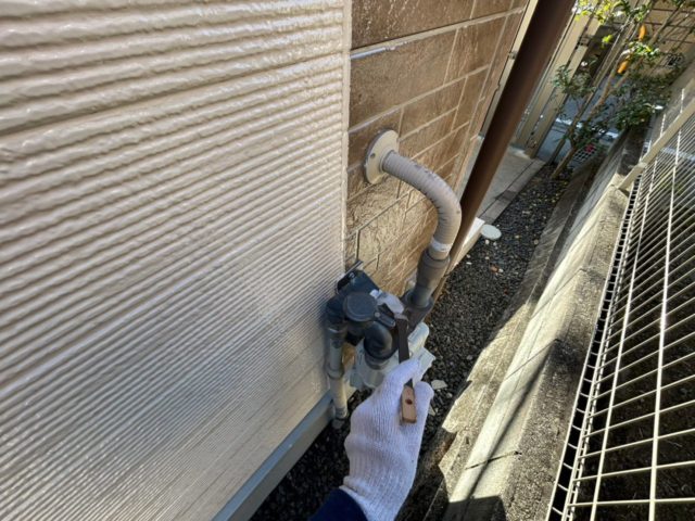 ↑ガス管 錆止め(鉄部下塗り)塗布作業中