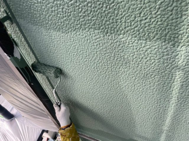 ↑屋根 中塗り《トップコート・RSルーフSi》塗布途中