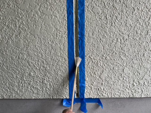 ↑誘発目地 現状 誘発目地とは 外壁のあちこちにひび割れを起こりにくくする為に ひび割れを集中させる役割のある目地になります😳なのでガッツリ割れている事が多いです😱😱