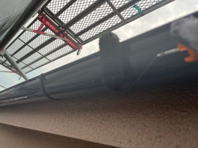↑雨どい 2回目上塗り(ダイナミックトップマイルド)塗布作業中 こういった付帯箇所は 外壁の塗料とは種類の違う塗料を使用します😊ペンターテイナーでは こちらの付帯塗装に使用する塗料のグレードにもこだわっております🫶🏻🤍