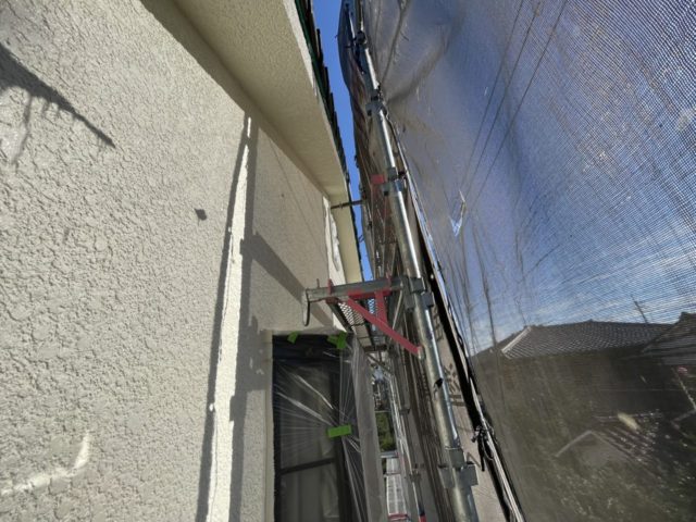 ↑外壁 塗料の密着を良くする役割の他 下地を整える役割のある下塗り材をしっかり塗布します🫡