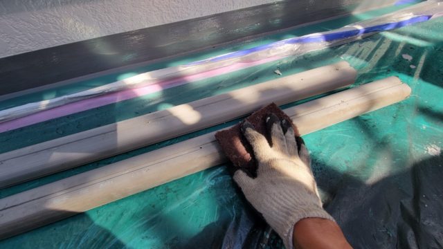 ↑エアコンホース化粧カバー ケレン後の清掃中