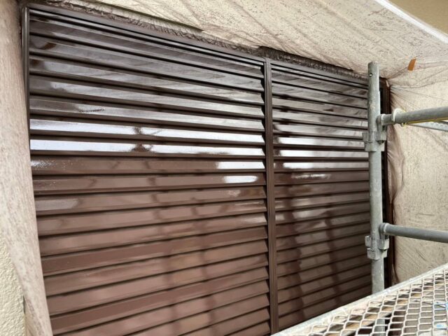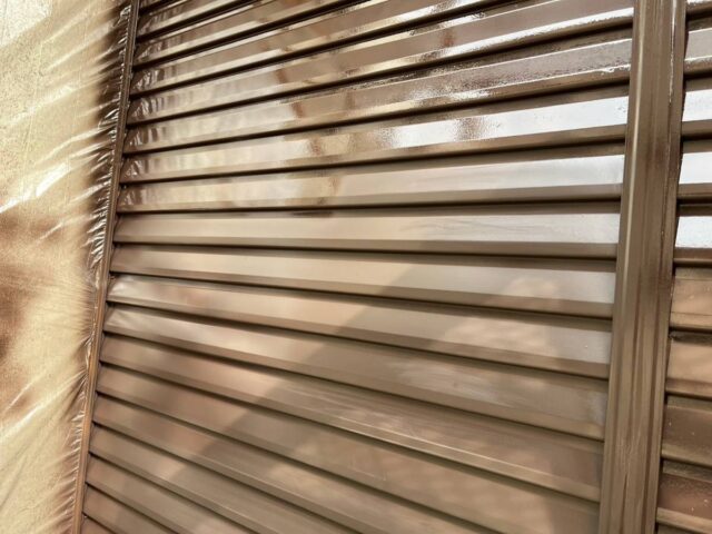 ↑雨戸 2回目上塗り(トップコート)吹きつけ完了