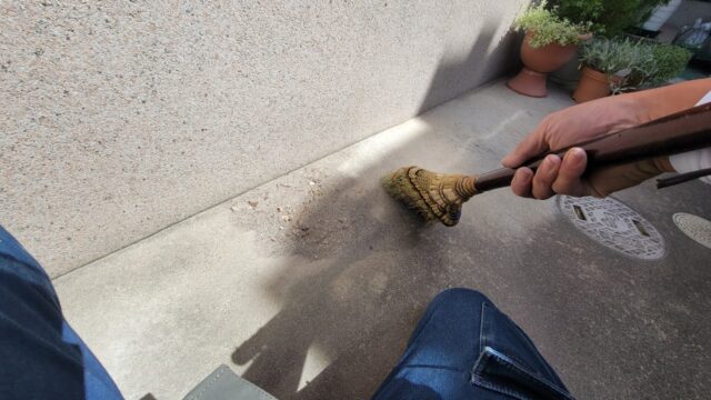 ↑掃き掃除中 塗装工事以外の箇所も塗装前よりキレイにする✨のが常識的なペンターテイナーです✌️❤