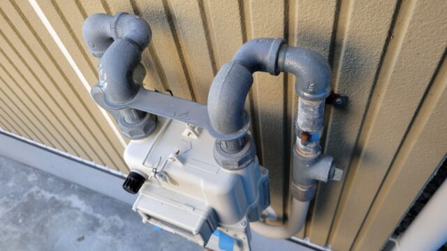 ↑ガス管 錆止め(鉄部下塗り)塗布完了