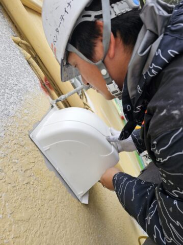 ↑換気フード 設置中 こちらは害獣対策の網目が付いているものにグレードアップしました🦇なぜか最近 害獣被害が増えているようです🦇🦇