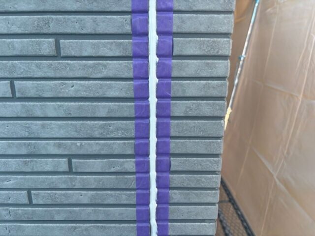 ↑目地 プライマー塗布作業中 プライマーとは❓シーリング材の密着を良くするための接着剤のような役割の塗料になります💁❤