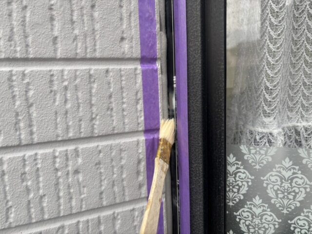 ↑サッシ廻り プライマー塗布作業中 プライマーとは?シーリング材の密着を良くするための接着剤のような役割の塗料になります🥺