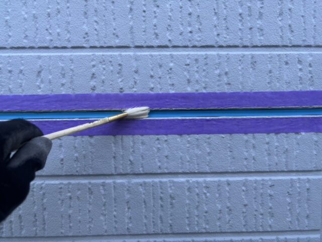 ↑プライマー塗布作業中 プライマーとは❓シーリング材の密着を良くするための接着剤のような役割になります🤗︎🤍