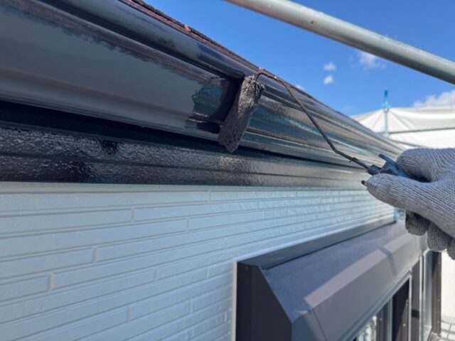 ↑軒どい 1回目上塗り(トップコート)塗布完了