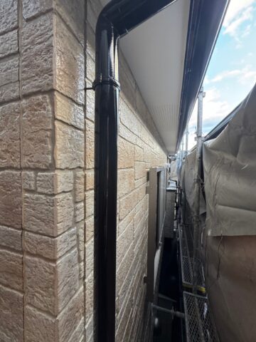 ↑雨どい 2回目上塗り(トップコート)塗布作業中