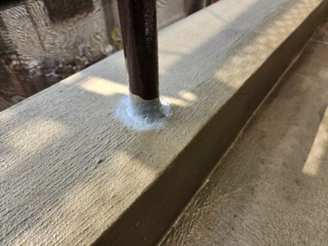 ↑バルコニー土間(床) 手すり付け根 こういった隙間からの雨漏りも多いので 丁寧に丁寧に✨