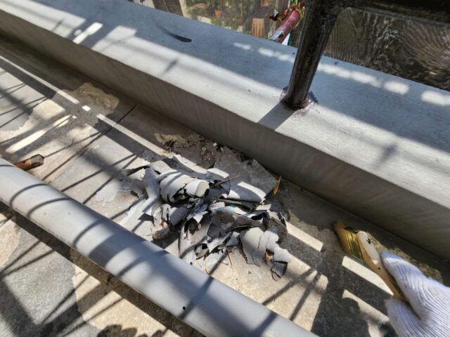 ↑バルコニー土間(床) 現状の防水塗料をめくっていくよ!ご自身で塗られたのか?ベリーベリー剥げます😭