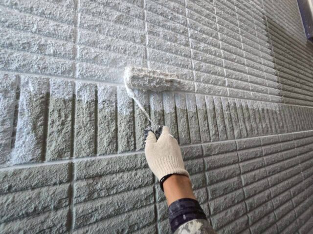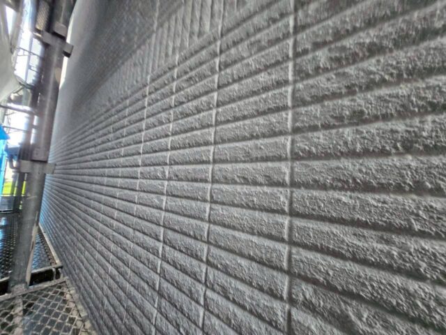 ↑外壁 下塗りフィラー(ウールローラー工法)塗布完了