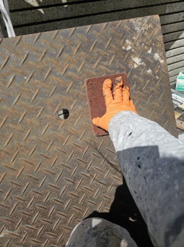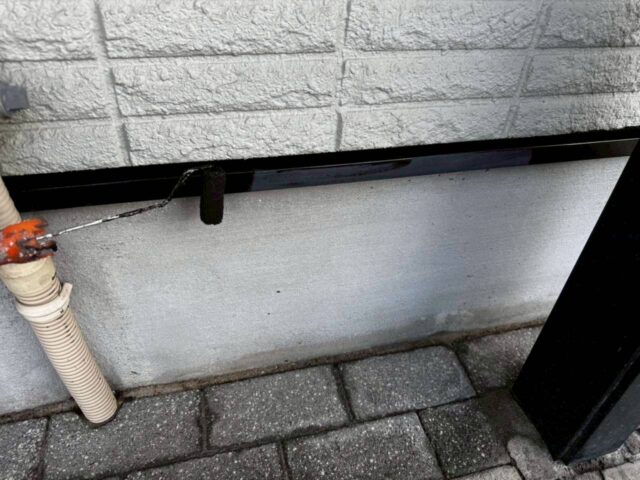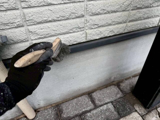 ↑土台水切り 錆止め(鉄部下塗り)塗布作業中 価格競争が進む中 こういった付帯箇所に下塗り材を塗布する業者も少なくなりましたが 耐久性を考えると間違いなく必要な工程になります😆