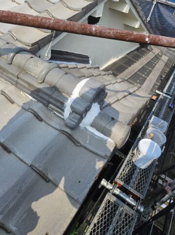 ↑屋根漆喰 今回は経年劣化で漆喰が無くなっている箇所のみの補修になります👷🏻♀️