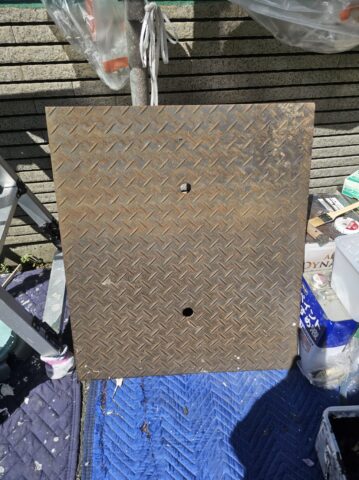 ↑家の前の側溝の鉄板!作った錆止め塗料が余ったので、サービスで塗っちゃいました👶