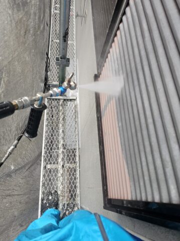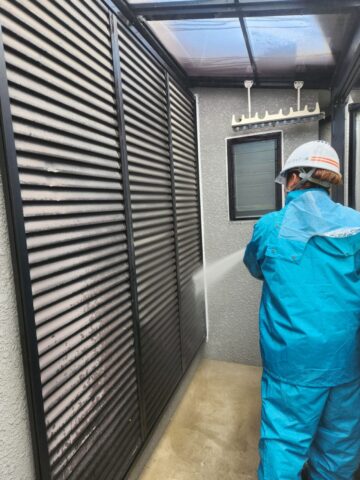 ↑雨戸 高圧洗浄中 気持ちいいぐらいチョーキングが落ちました✨🏠